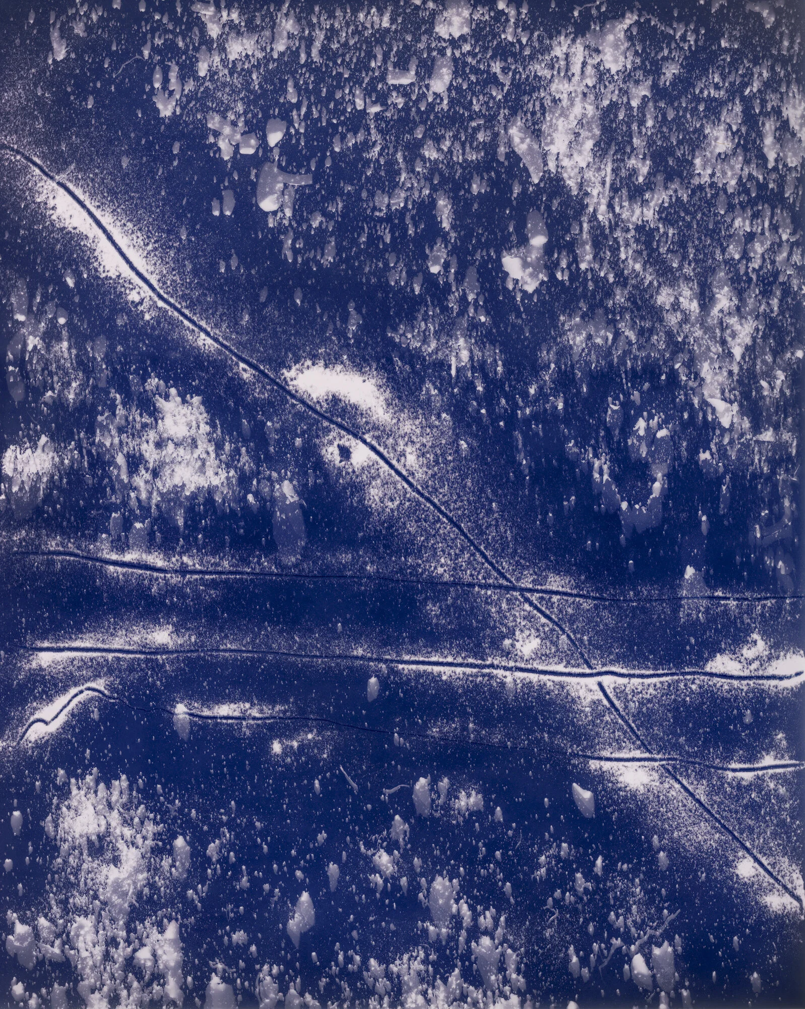 Incorporating commingled soil samples collected from around the country that are laid down on the surface of the paper as a substrate, the deconstructed border lines are drawn through the dirt allowing for the light of the sun to interact with the surface of the light sensitive paper. A fugitive shadow remains in those areas, and these ephemeral images are scanned, printed digitally and archived to allow for presentation. All the while the original, light sensitive prints are archivally stored, slowly aging and continuing to age and evolve in the safety of darkness waiting for the day when they become permanent.